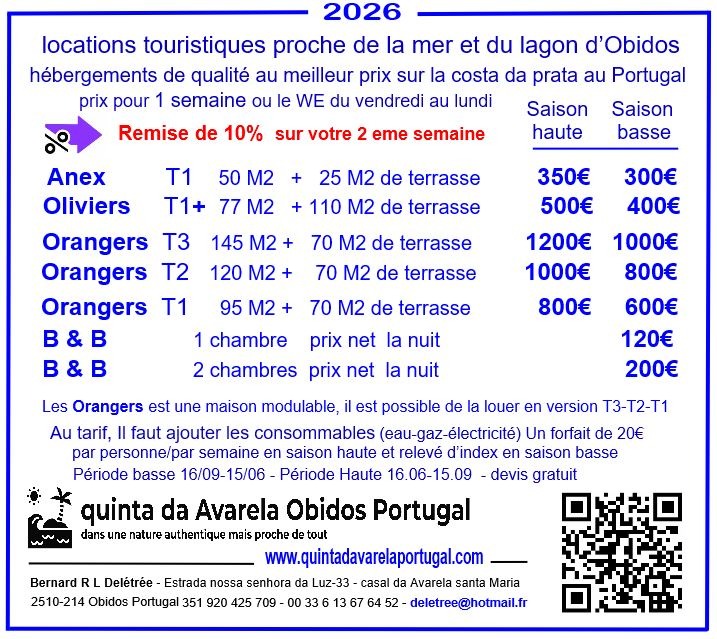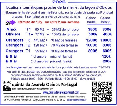 domaine quinta da Avarela, des logements de vacances et B & B pas chers à Ôbidos Portugal