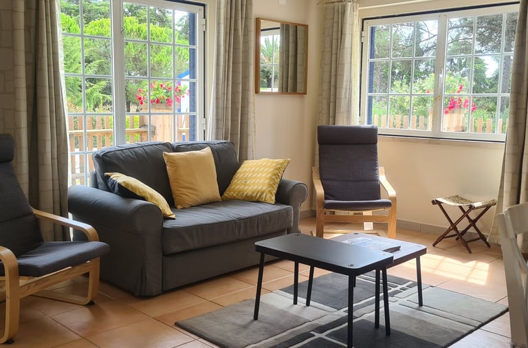 Située dans le domaine de la quinta da Avarela au Portugal, proche de la mer et du lagon, la maison de vacances "les Oliviers" est située devant le jardin des oliviers, c'est un T1 + de 70 M2 capacité 2 personnes avec option 2 personnes supplémentaires, 1 chambre parentale avec lit de 1.60m, SdB avec douche, salle à mager et séjour avec convertible, salon, cuisine équipée, feu à pellets, (fenêtre dans toutes les pièces) TV numérique, Internet haut débit, terrasse extérieur de 110 M2 avec mobilier de jardin, barbecue pour les repas , dépendance de 11 m2 avec 2 convertibles de 1.30m & 0.80m - WC-lavabo-Lave Linge -cumulus solaire -vmc - parking 3 voitures devant la maison, jardins privatifs et parc arboré de 20 000M2. Piscine commune ouverte de juillet à septembre selon la saison. Ici, vous êtes a moins de 3km de la cité médiévale de Obidos, de Caldas da Rainha, des centres commerciaux, de l'A8. Lisbonne - Fatima 75 km - Baléal-Peniche 20 km - Nazaré 25km - lagon 15km - Foz do Arelho beach 10km